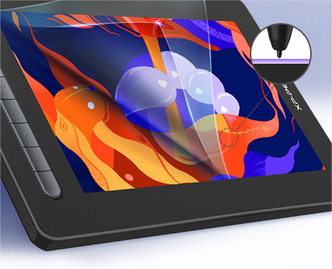 Full lamination screen technology. The screen and display are seamlessly laminated to avoid parallax errors between the stylus nib and cursor, precisely positioning every single one of your strokes.