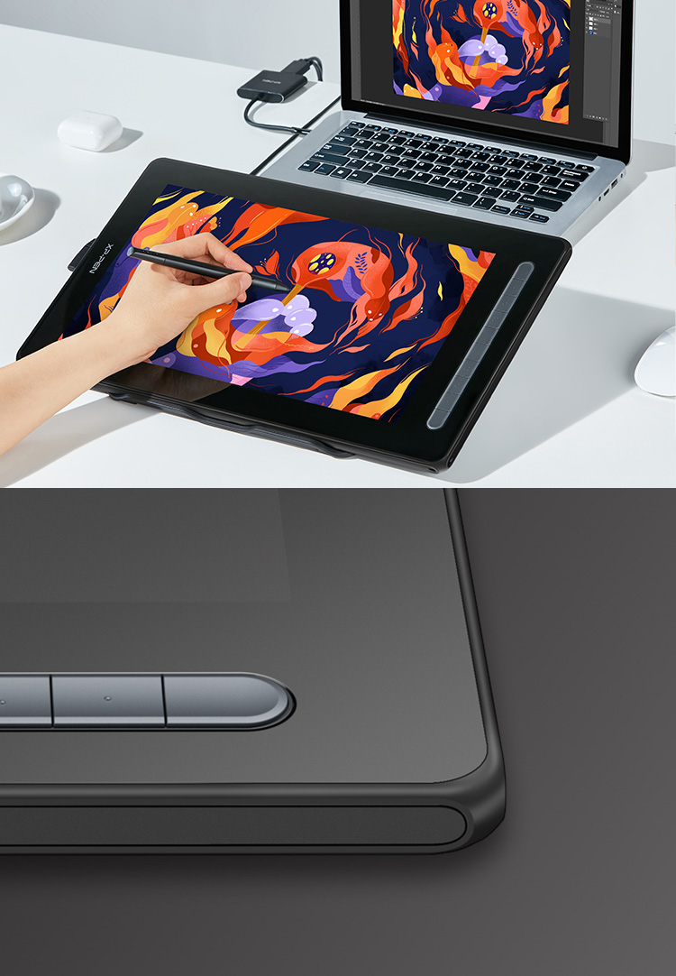 Long press the power button for 3 seconds, it will flash in blue and orange alternately. When the screen is off, the display will switch into a drawing tablet, giving you an additional drawing option.